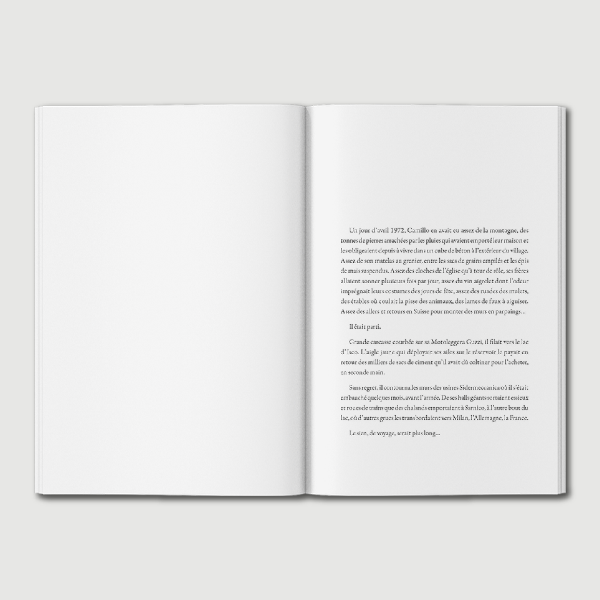 Assez de son matelas au grenier, entre les sacs de grains empilés et les épis de maïs suspendus. Assez des cloches de l’église qu’à tour de rôle ses frères allaient sonner, assez du vin aigrelet dont l’odeur imprégnait leurs costumes des jours de fête, des étables où coulait la pisse des animaux, des lames de faux à aiguiser. Assez des allers et retours en Suisse pour monter des murs en parpaing...